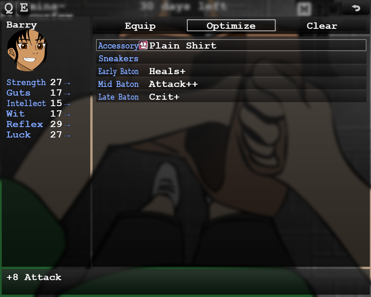 however i use pageup and pagedown (mapped to Q and E) to switch between party members in the Equipment scene, and that only works if you're hovering over the top row (Equip, Optimize, Clear). Hovering over the below rows won't let you use Q and E.