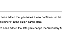 - September 24, 2024 by Dungeonmind1#dmplugins, #tool, #rpg maker mz, #RMMZ, #dm-limited-inventory, #updateHello, I'm back with more great updates for the plugin! You can now use plugin commands or script calls to create containers from in-game and store the container's ID in a variable. I've also added an... Continue reading
